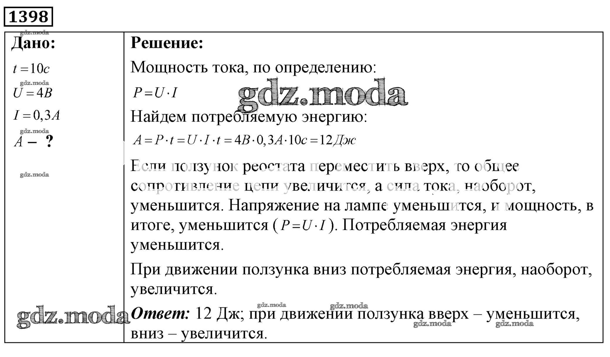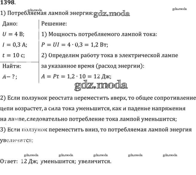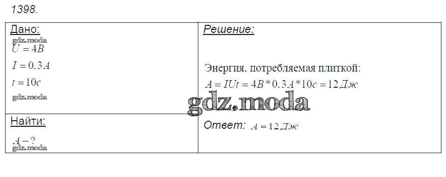 ОТВЕТ на задание № 1398 Сборник задач по Физике 7-9 класс Лукашик