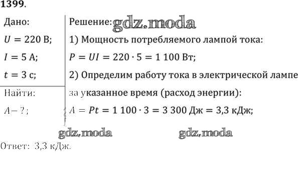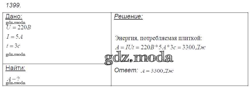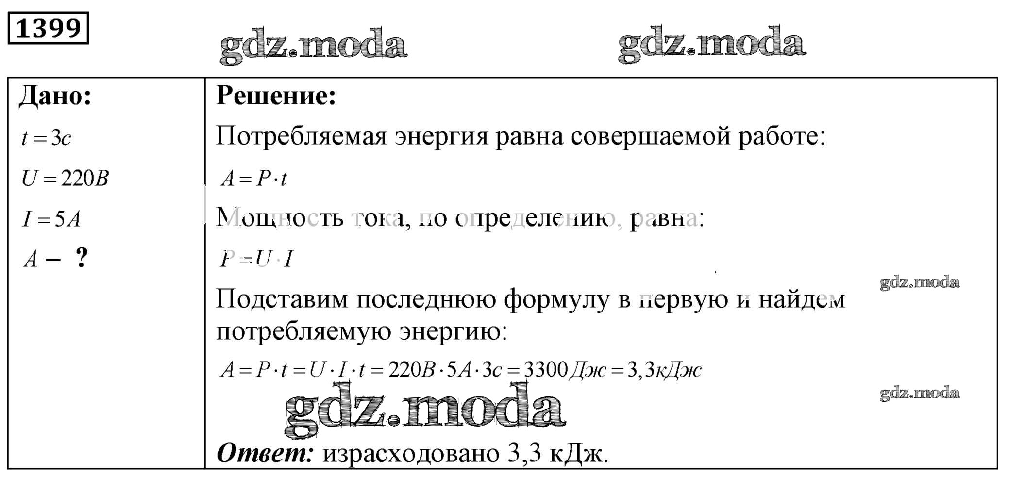 ОТВЕТ на задание № 1399 Сборник задач по Физике 7-9 класс Лукашик