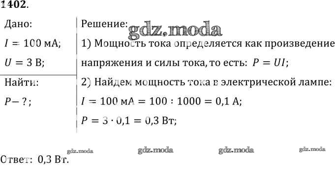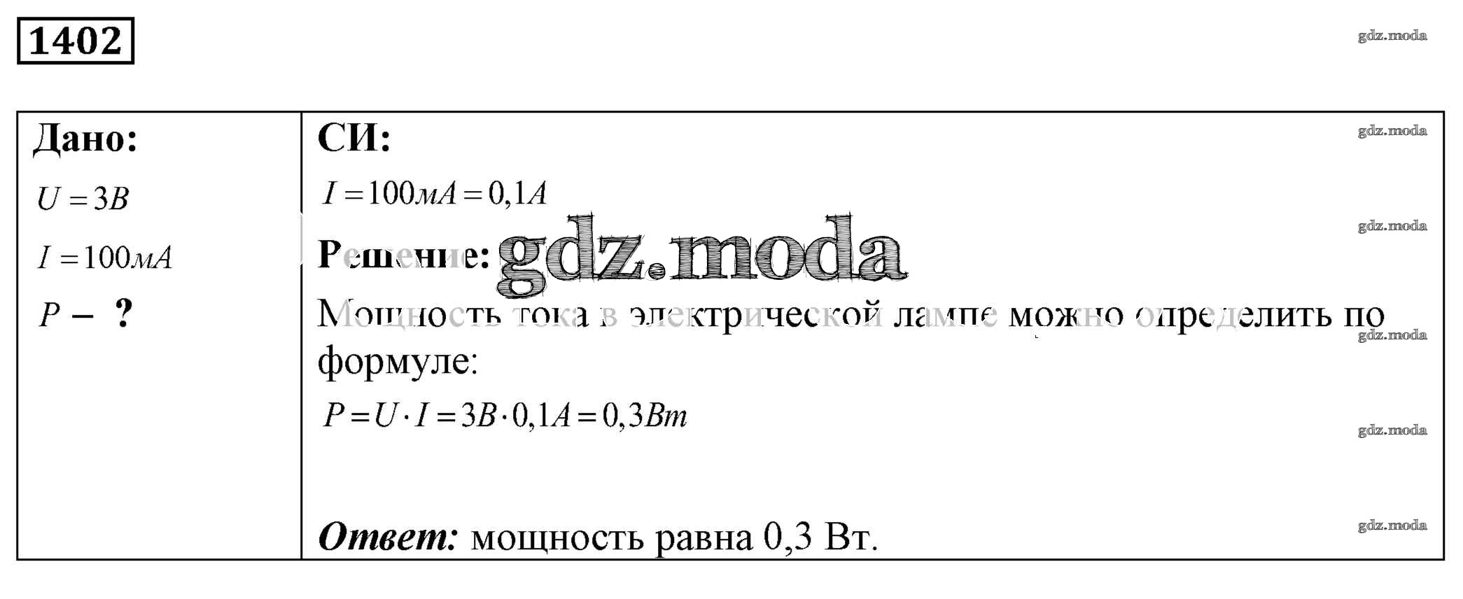 ОТВЕТ на задание № 1402 Сборник задач по Физике 7-9 класс Лукашик
