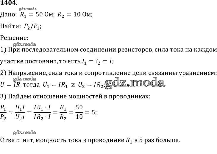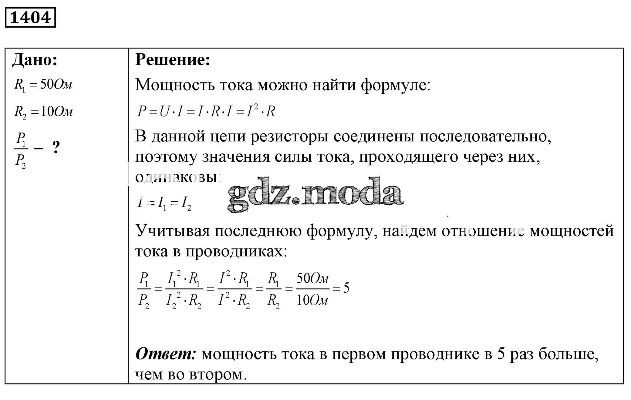 ОТВЕТ на задание № 1404 Сборник задач по Физике 7-9 класс Лукашик
