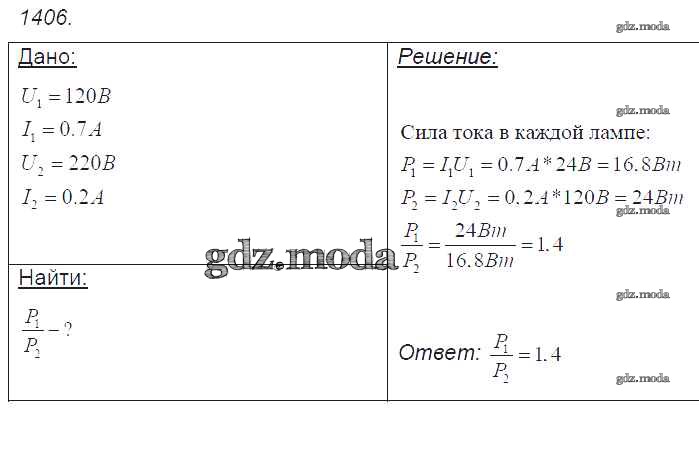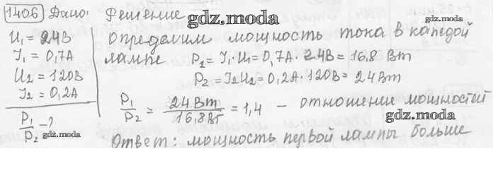 ОТВЕТ на задание № 1406 Сборник задач по Физике 7-9 класс Лукашик
