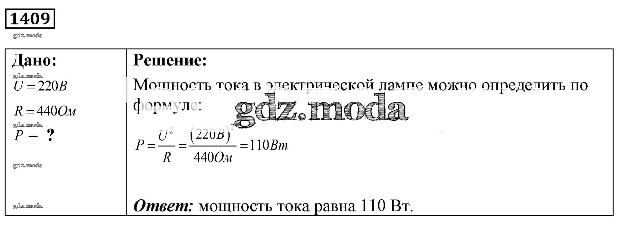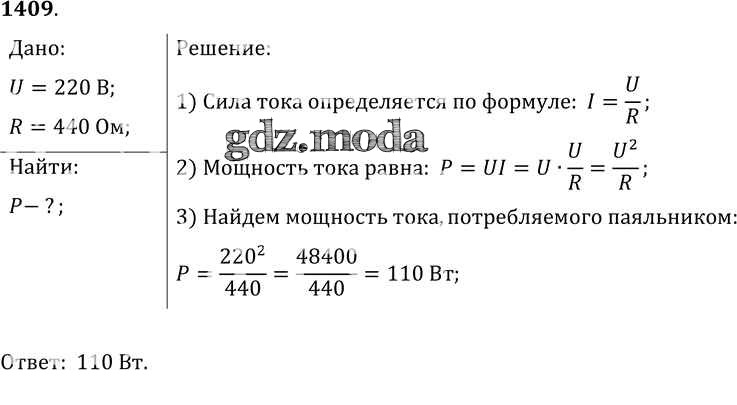 ОТВЕТ на задание № 1409 Сборник задач по Физике 7-9 класс Лукашик