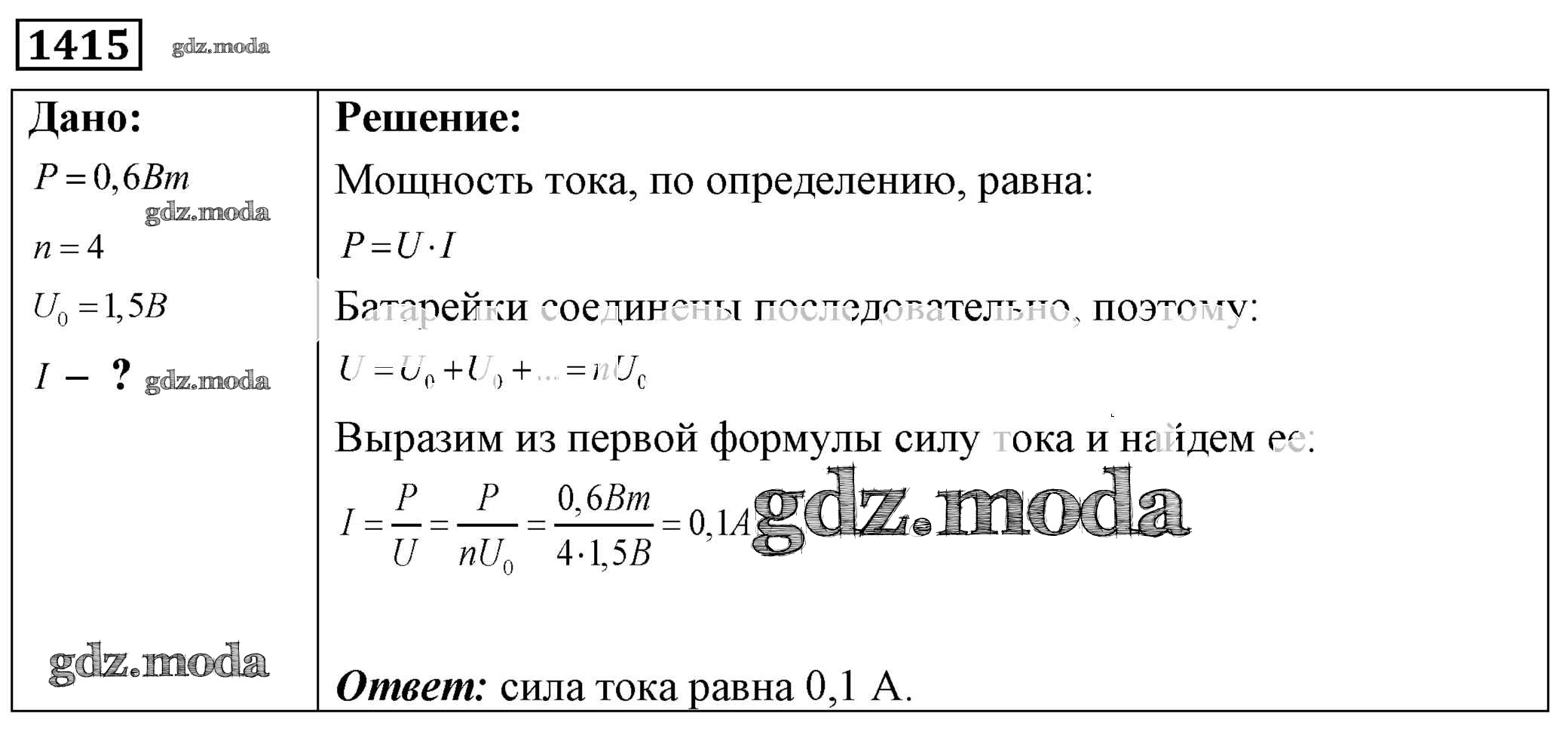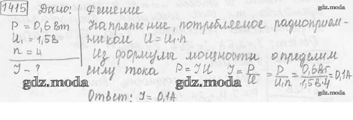 ОТВЕТ на задание № 1415 Сборник задач по Физике 7-9 класс Лукашик