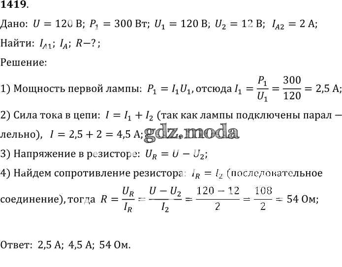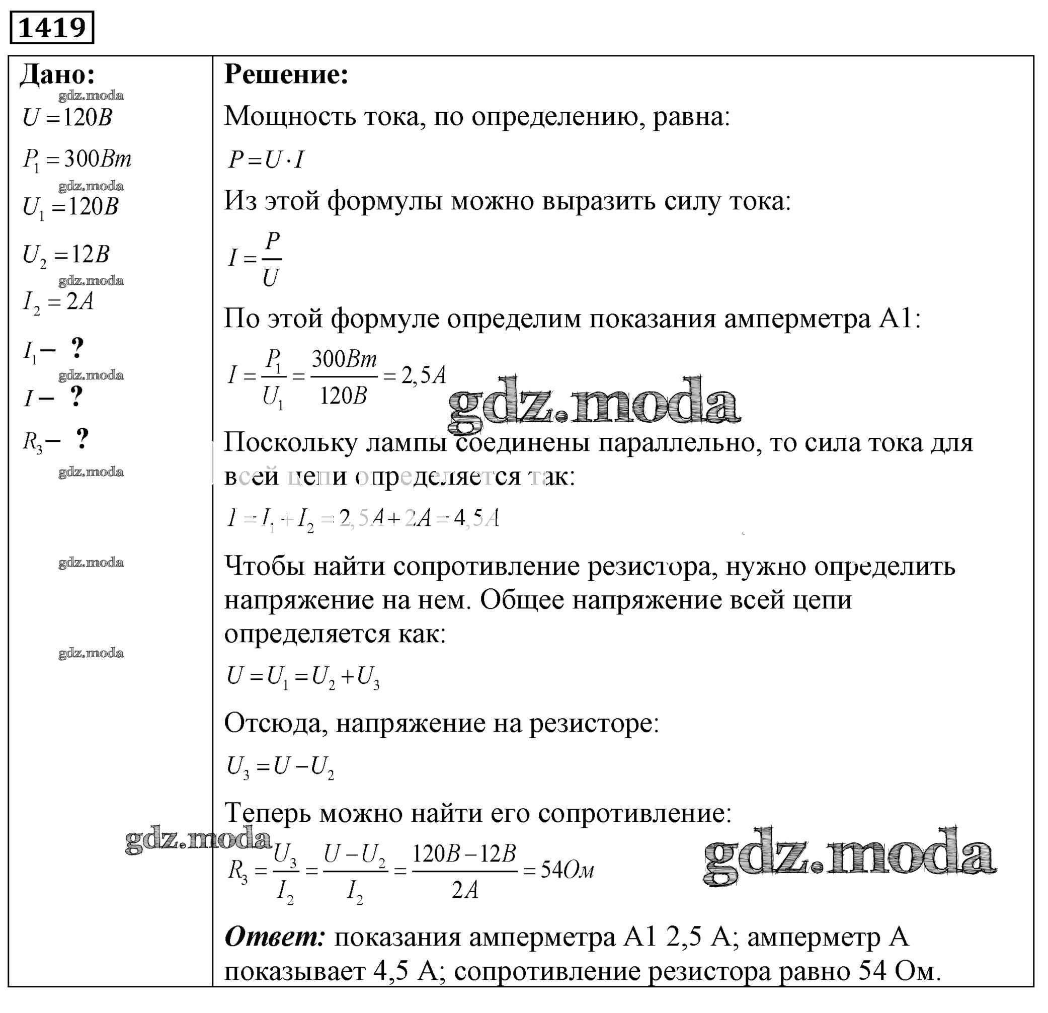 ОТВЕТ на задание № 1419 Сборник задач по Физике 7-9 класс Лукашик