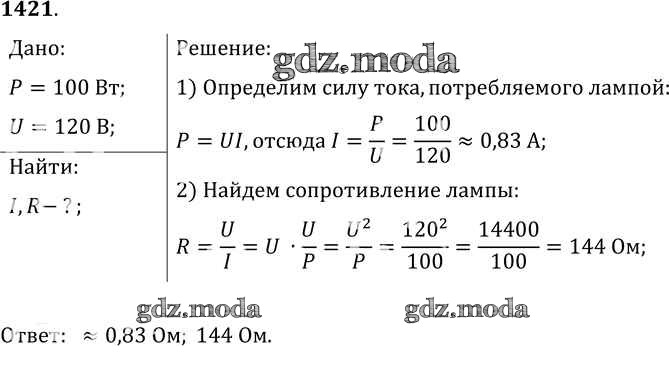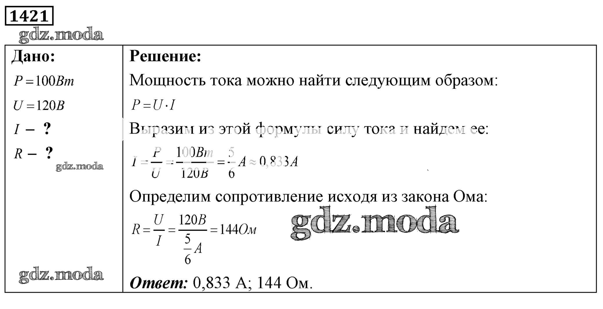 ОТВЕТ на задание № 1421 Сборник задач по Физике 7-9 класс Лукашик