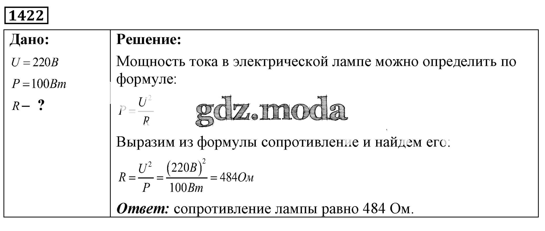 ОТВЕТ на задание № 1422 Сборник задач по Физике 7-9 класс Лукашик