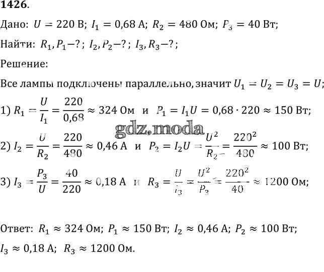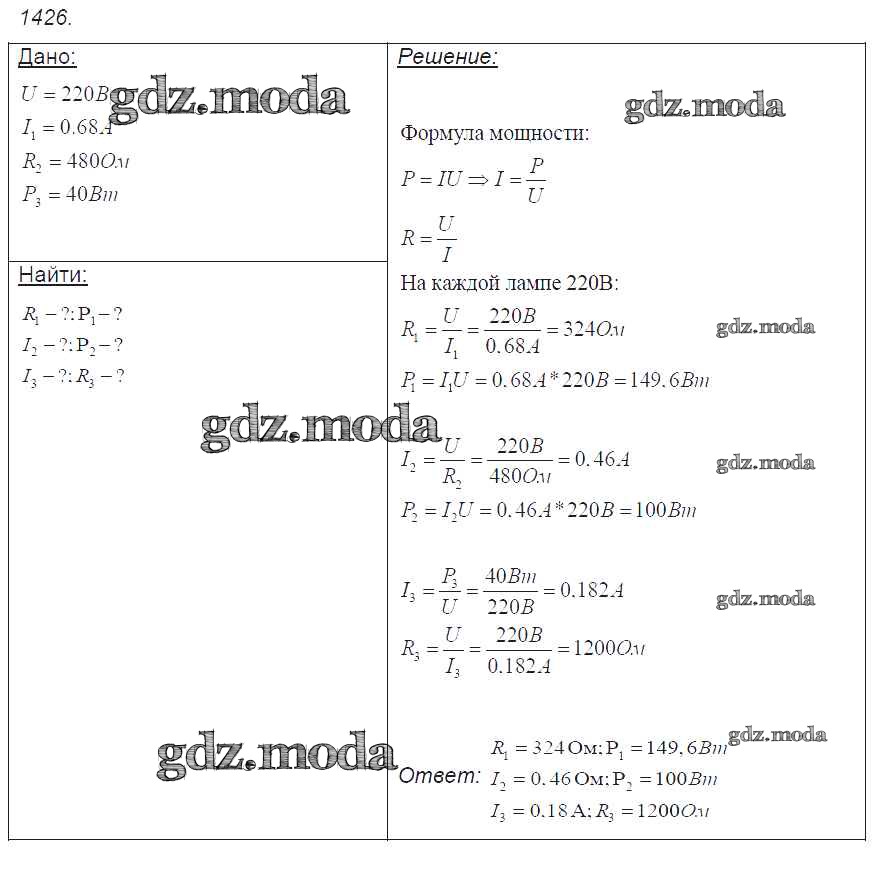 ОТВЕТ на задание № 1426 Сборник задач по Физике 7-9 класс Лукашик