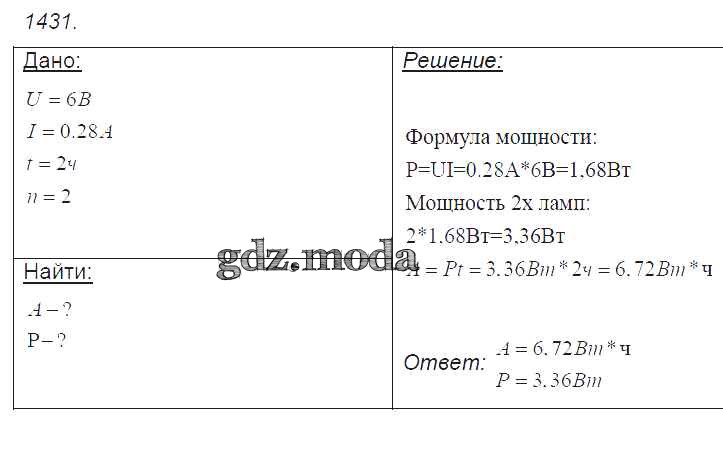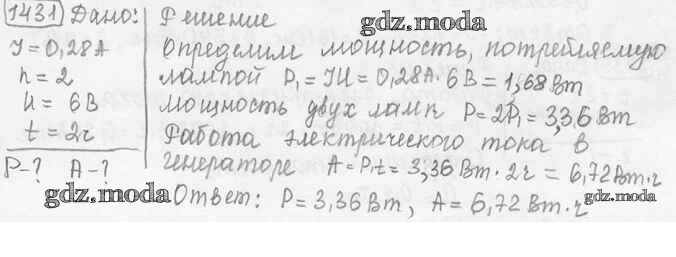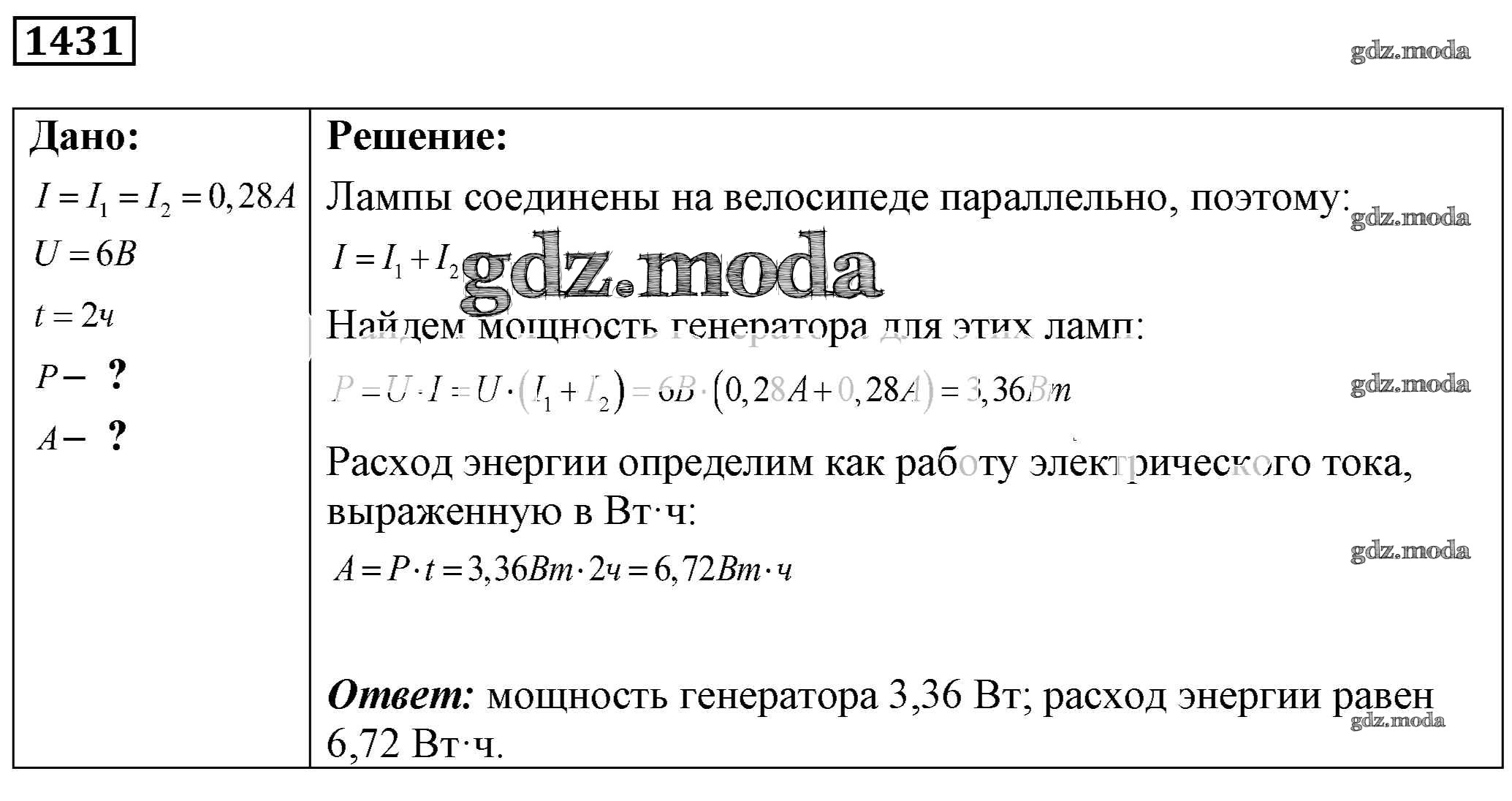 ОТВЕТ на задание № 1431 Сборник задач по Физике 7-9 класс Лукашик