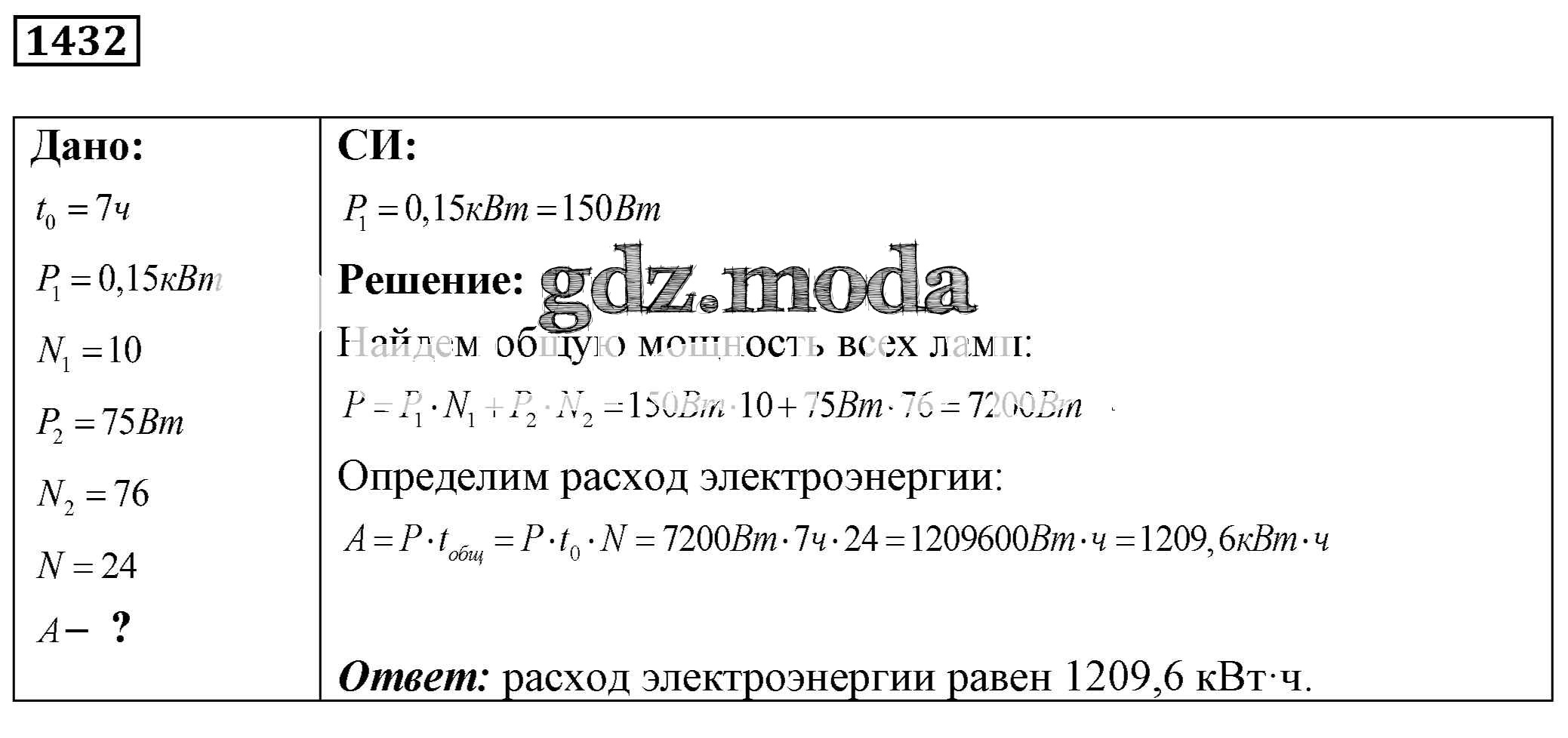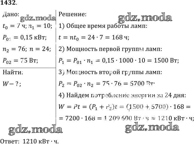 ОТВЕТ на задание № 1432 Сборник задач по Физике 7-9 класс Лукашик