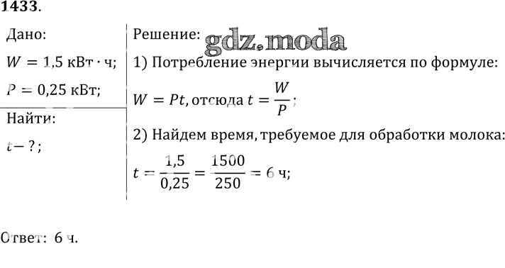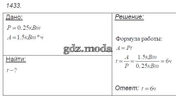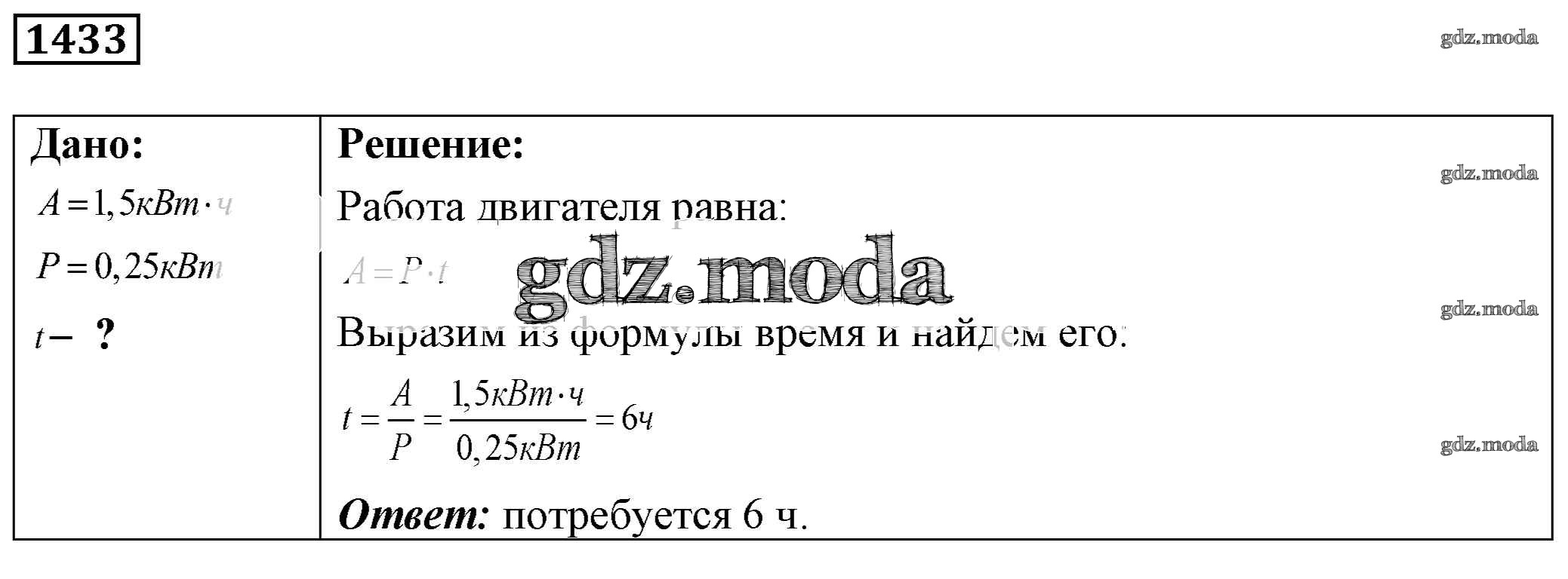 ОТВЕТ на задание № 1433 Сборник задач по Физике 7-9 класс Лукашик