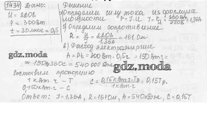 ОТВЕТ на задание № 1434 Сборник задач по Физике 7-9 класс Лукашик