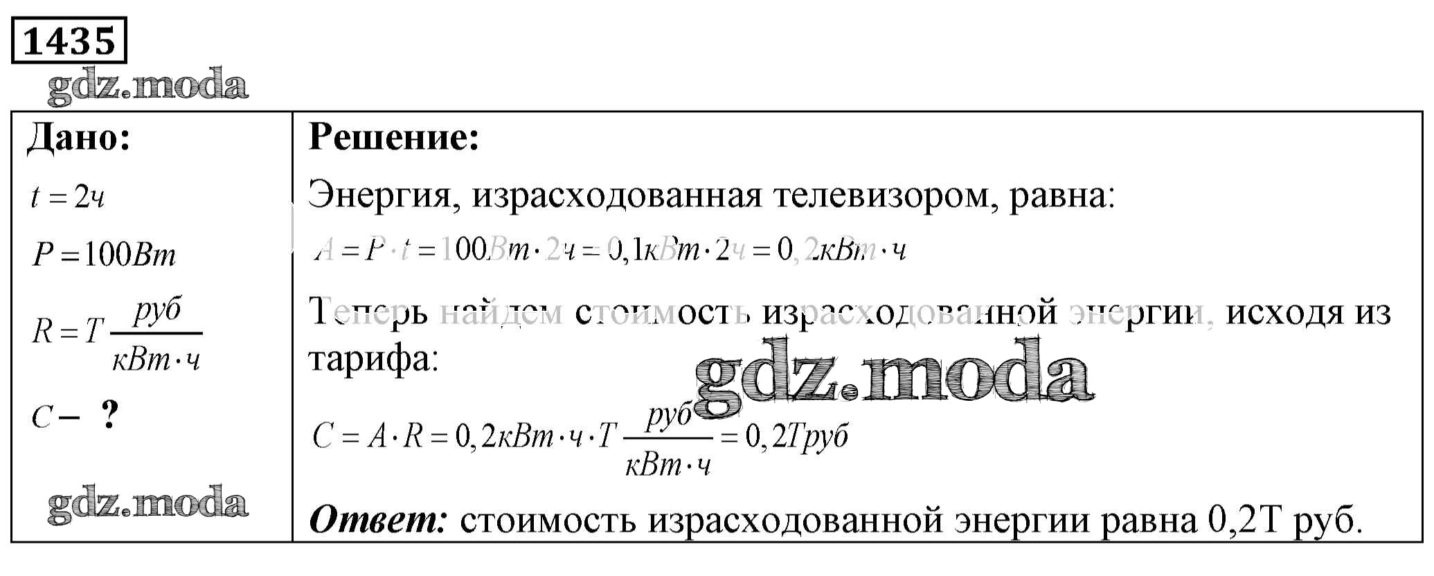 ОТВЕТ на задание № 1435 Сборник задач по Физике 7-9 класс Лукашик