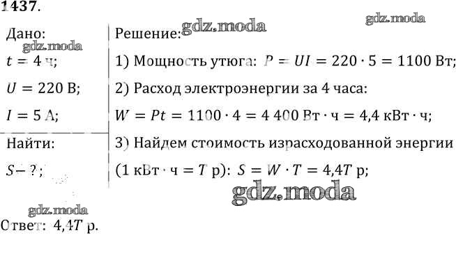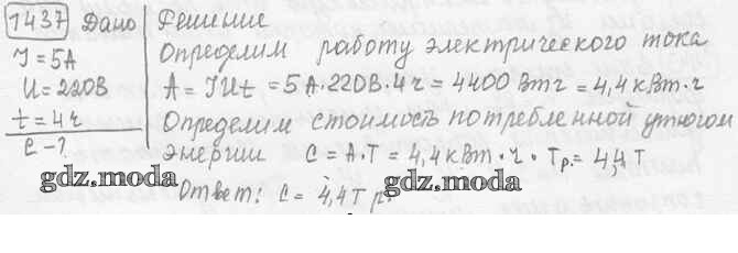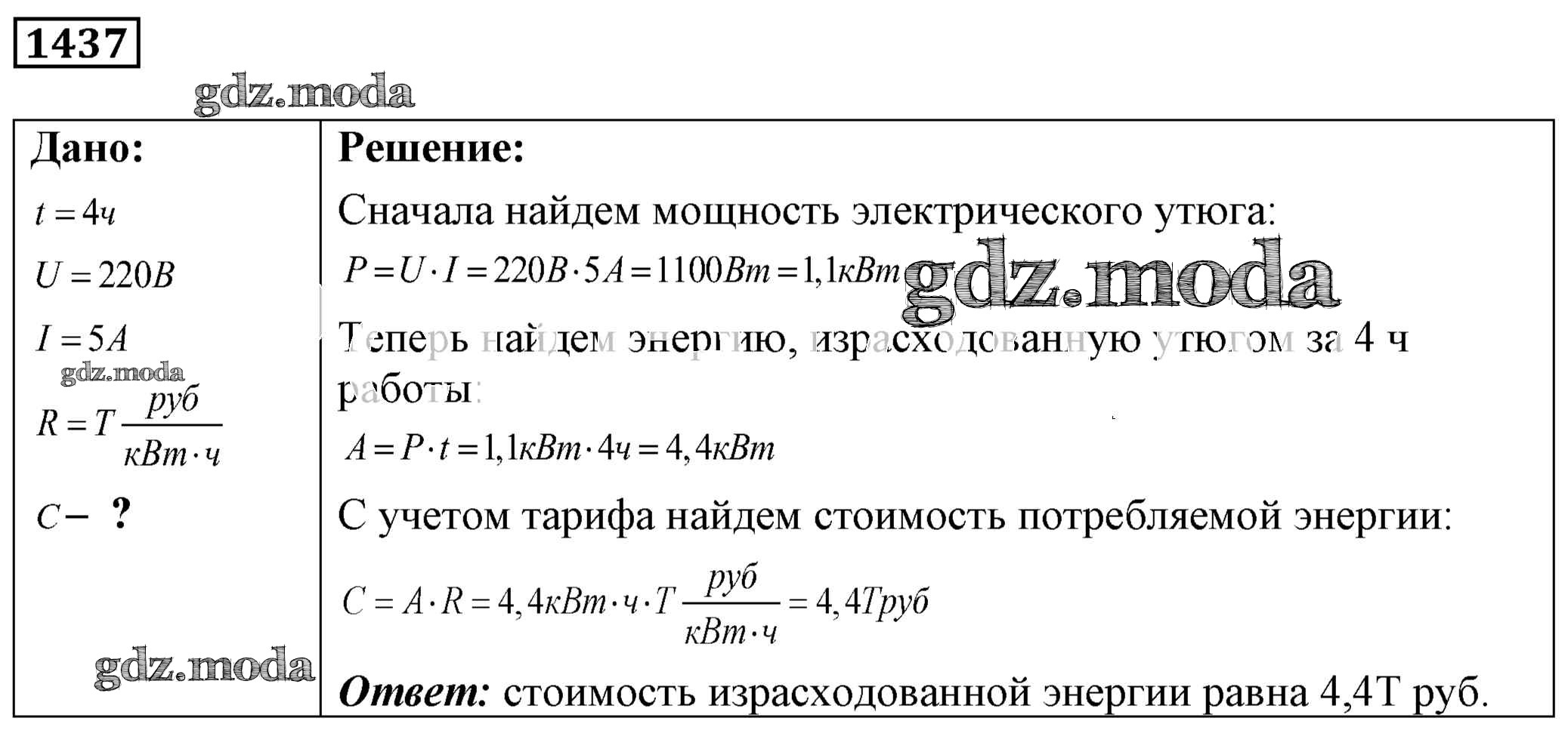 ОТВЕТ на задание № 1437 Сборник задач по Физике 7-9 класс Лукашик