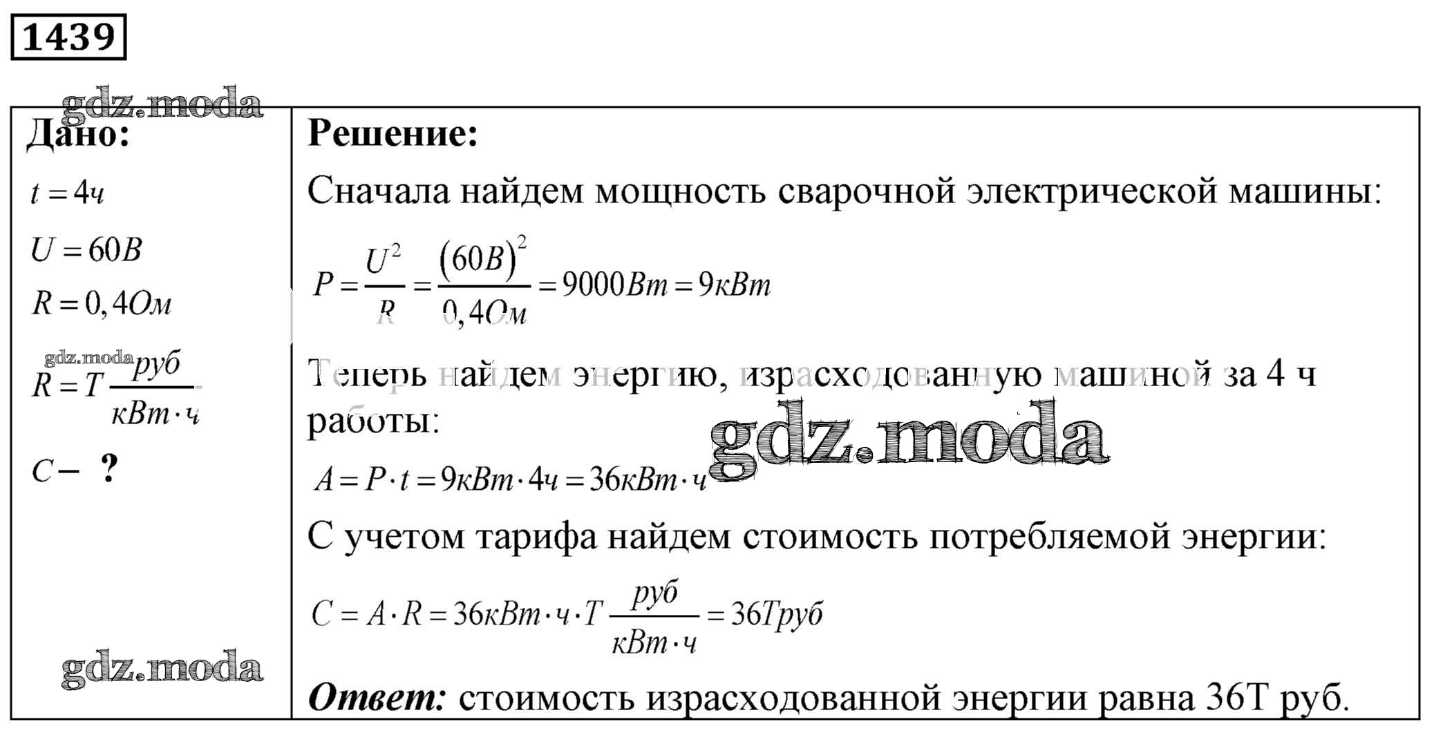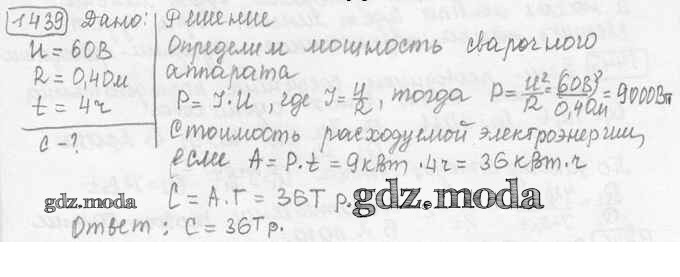 ОТВЕТ на задание № 1439 Сборник задач по Физике 7-9 класс Лукашик