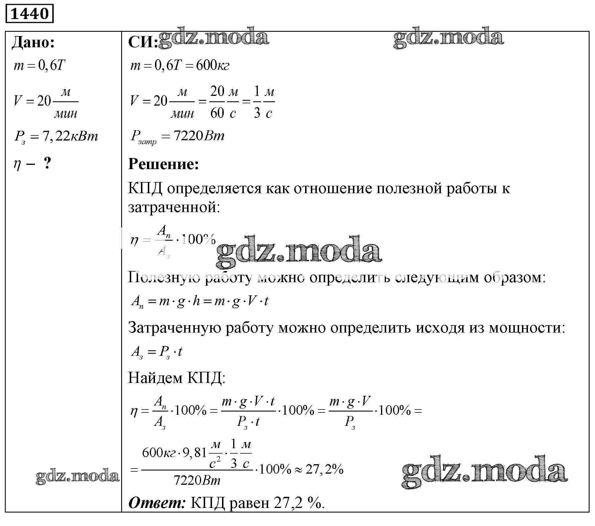 ОТВЕТ на задание № 1440 Сборник задач по Физике 7-9 класс Лукашик