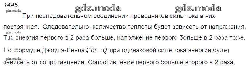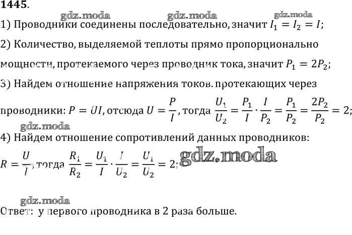 ОТВЕТ на задание № 1445 Сборник задач по Физике 7-9 класс Лукашик