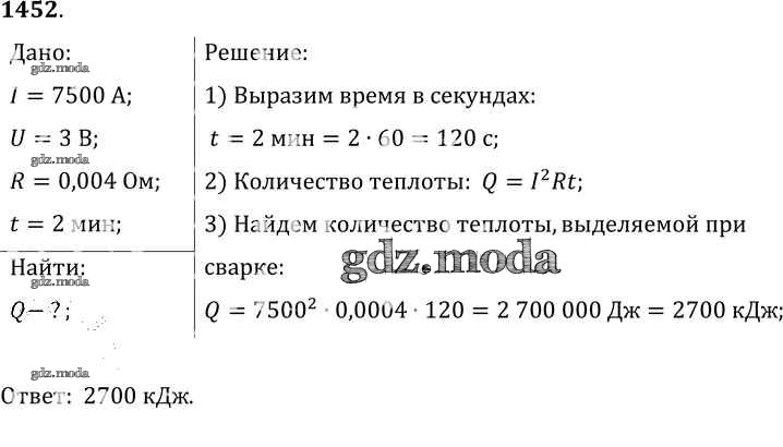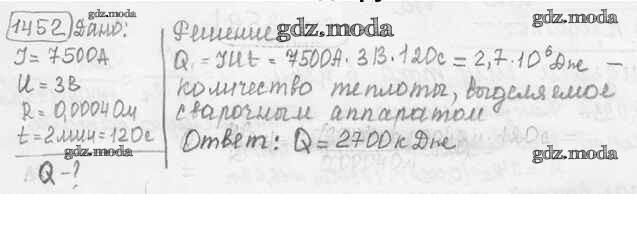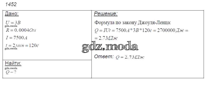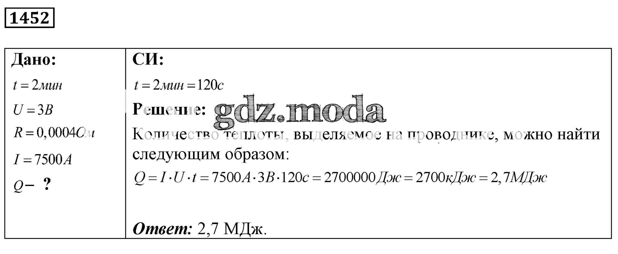 ОТВЕТ на задание № 1452 Сборник задач по Физике 7-9 класс Лукашик
