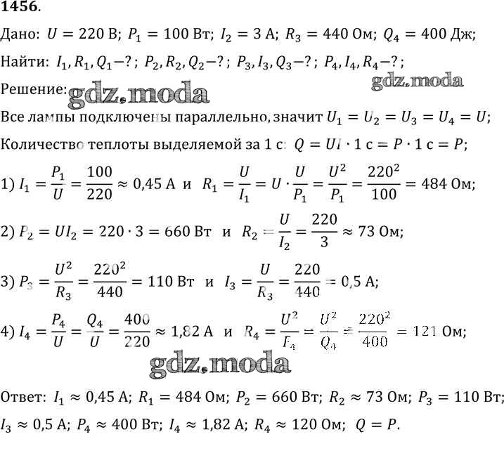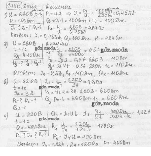 ОТВЕТ на задание № 1456 Сборник задач по Физике 7-9 класс Лукашик