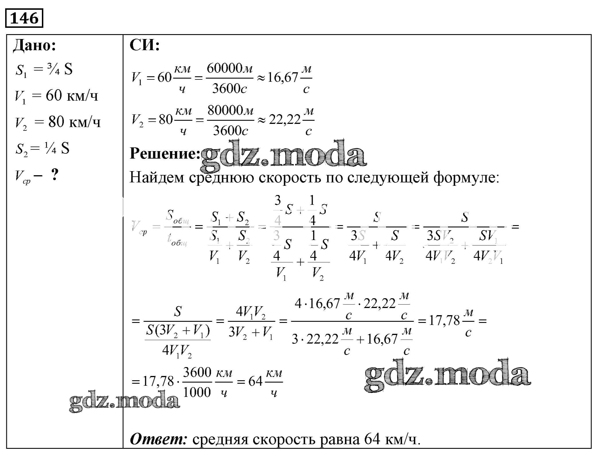 ОТВЕТ на задание № 146 Сборник задач по Физике 7-9 класс Лукашик