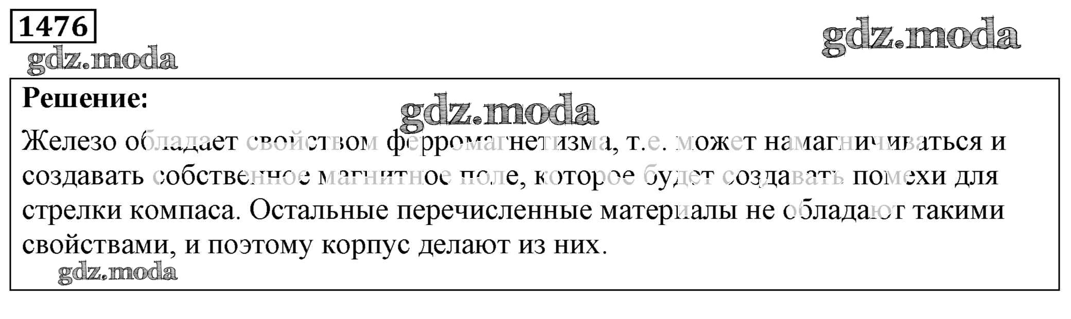 ОТВЕТ на задание № 1476 Сборник задач по Физике 7-9 класс Лукашик