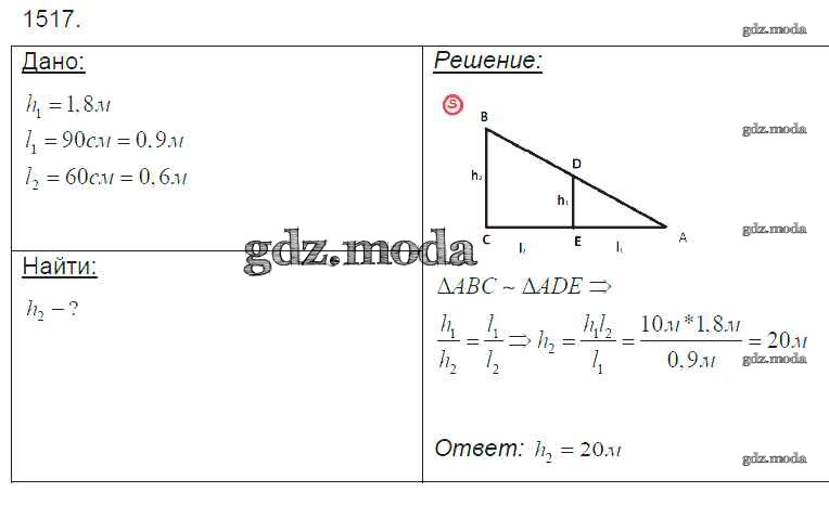ОТВЕТ на задание № 1517 Сборник задач по Физике 7-9 класс Лукашик