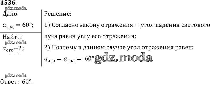 ГДЗ решение к заданию № 1536 Физика 7-9 класс Сборник задач Лукашик В.И. Просвещение 2011 ФГОС бесплатно на гдз.мода!