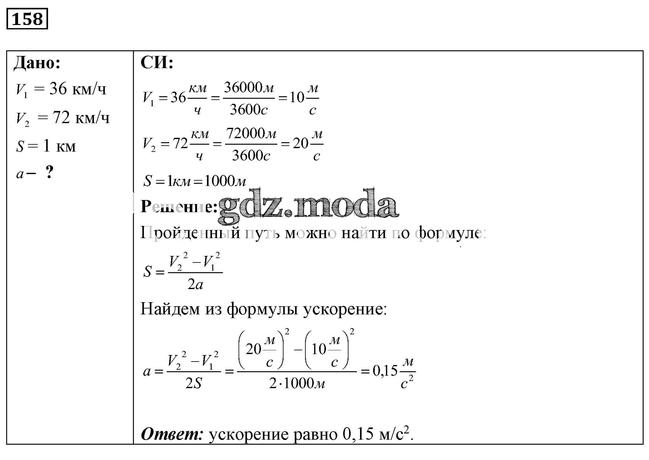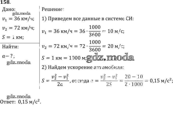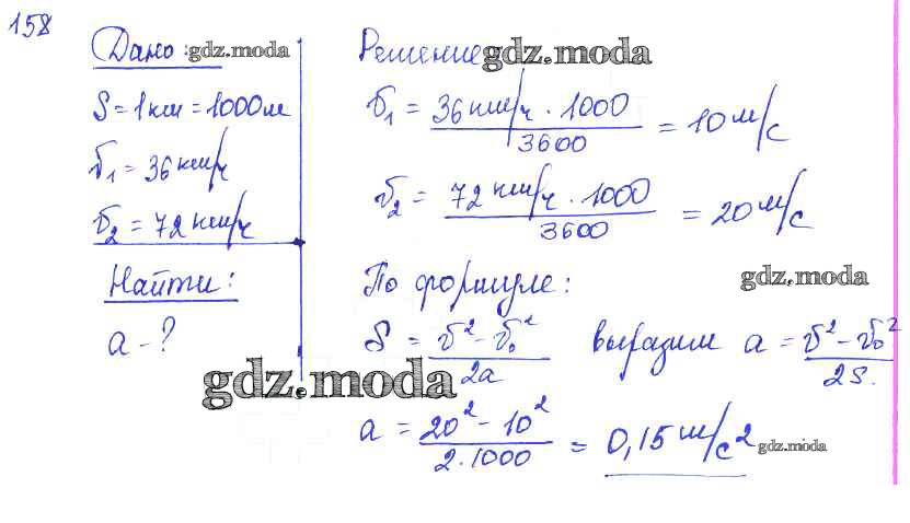 ОТВЕТ на задание № 158 Сборник задач по Физике 7-9 класс Лукашик