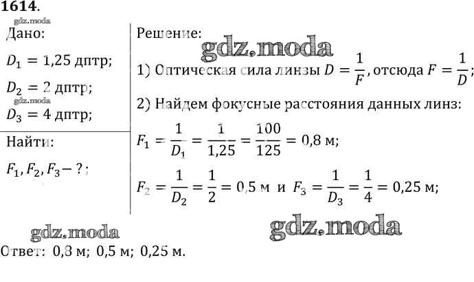 ГДЗ решение к заданию № 1614 Физика 7-9 класс Сборник задач Лукашик В.И. Просвещение 2011 ФГОС бесплатно на гдз.мода!