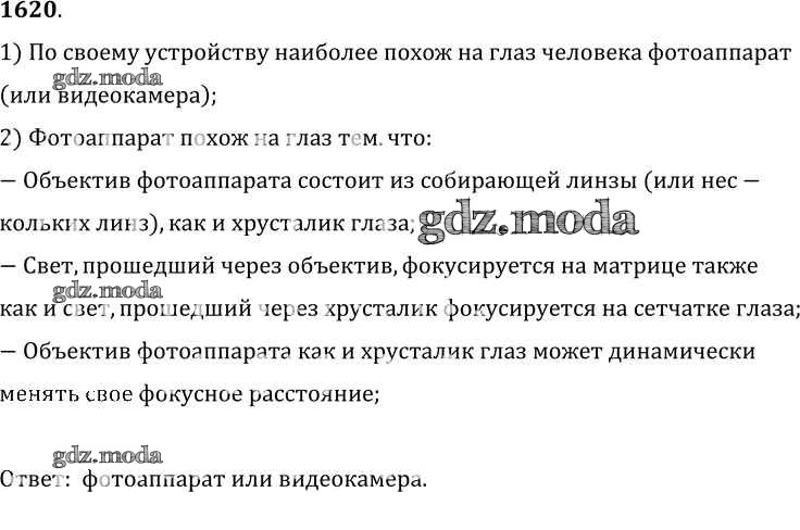 ГДЗ решение к заданию № 1620 Физика 7-9 класс Сборник задач Лукашик В.И. Просвещение 2011 ФГОС бесплатно на гдз.мода!