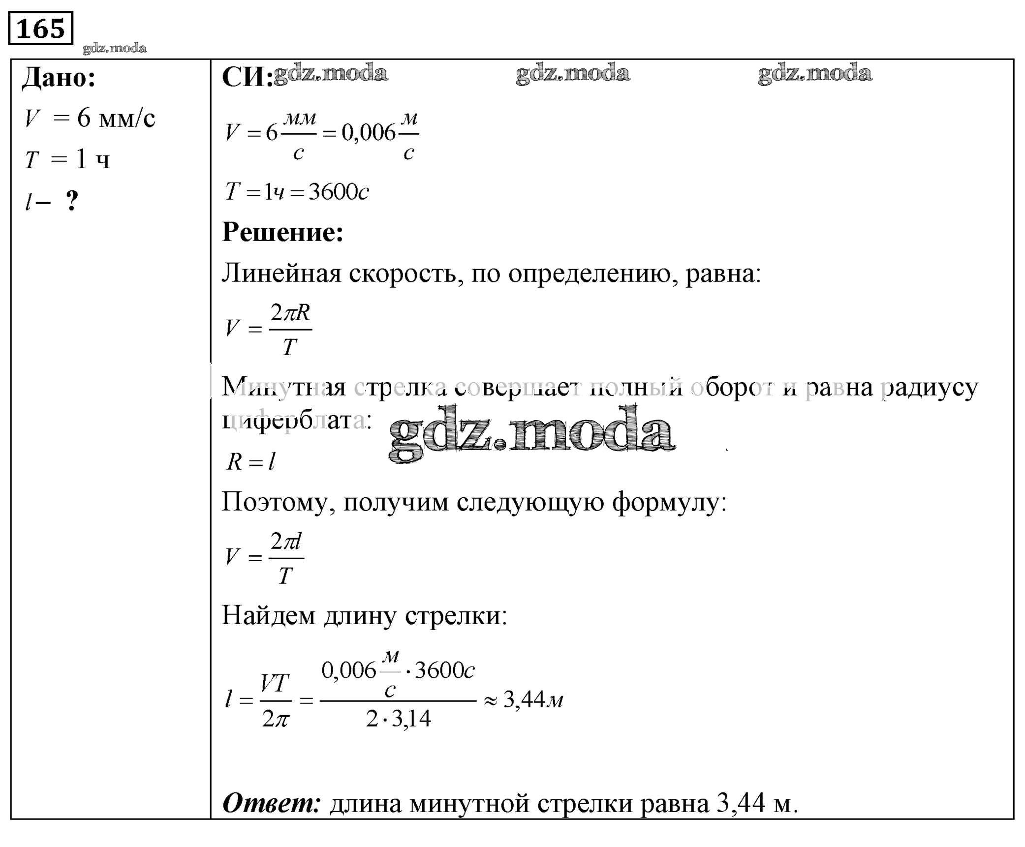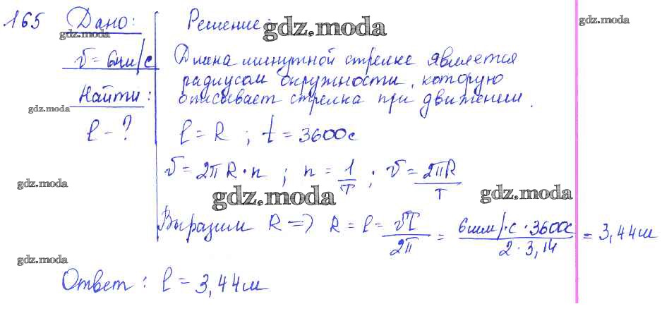 ОТВЕТ на задание № 165 Сборник задач по Физике 7-9 класс Лукашик