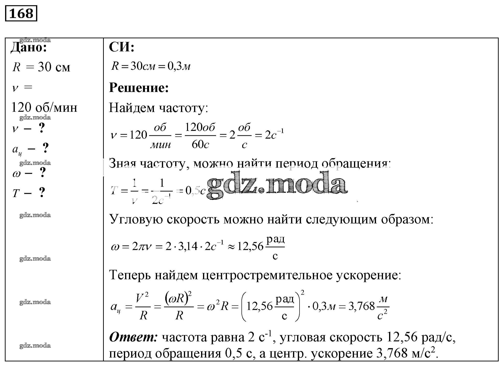 ОТВЕТ на задание № 168 Сборник задач по Физике 7-9 класс Лукашик