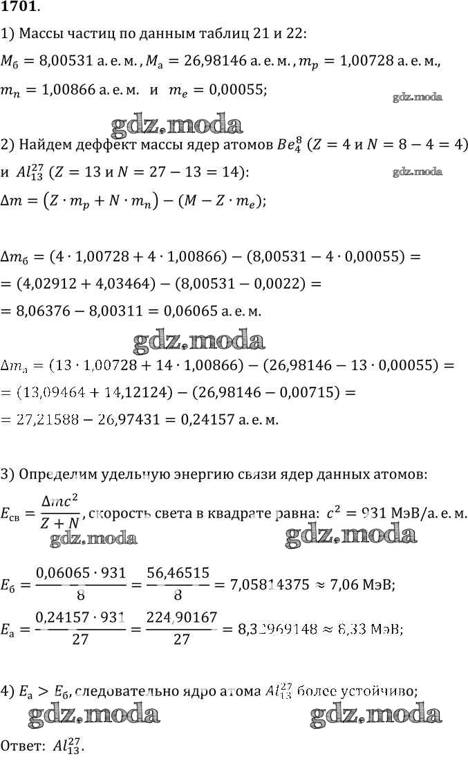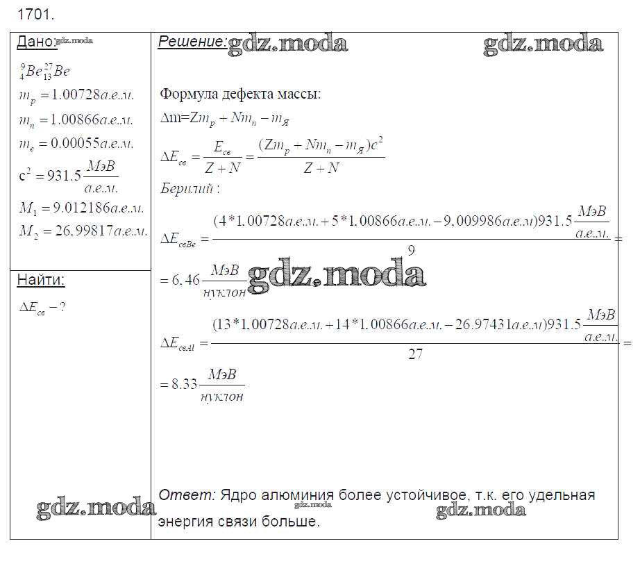 ГДЗ решение к заданию № 1701 Физика 7-9 класс Сборник задач Лукашик В.И. Просвещение 2011 ФГОС бесплатно на гдз.мода!