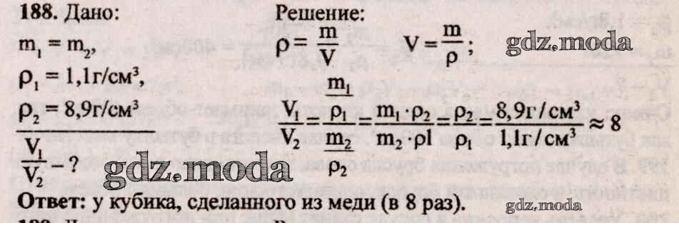 ОТВЕТ на задание № 188 Сборник задач по Физике 7-9 класс Лукашик