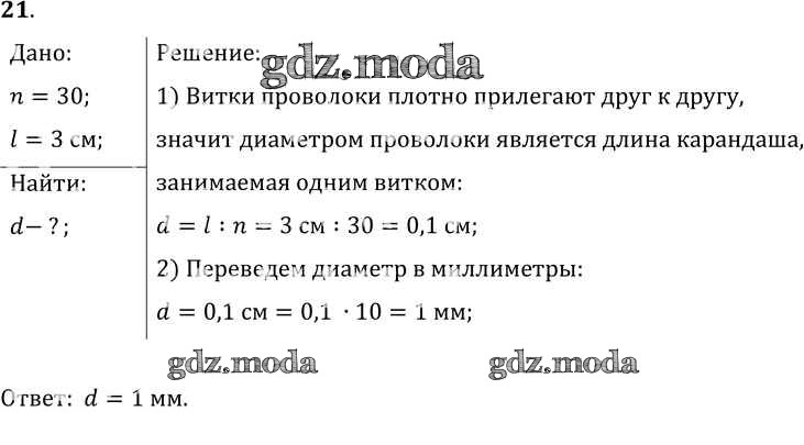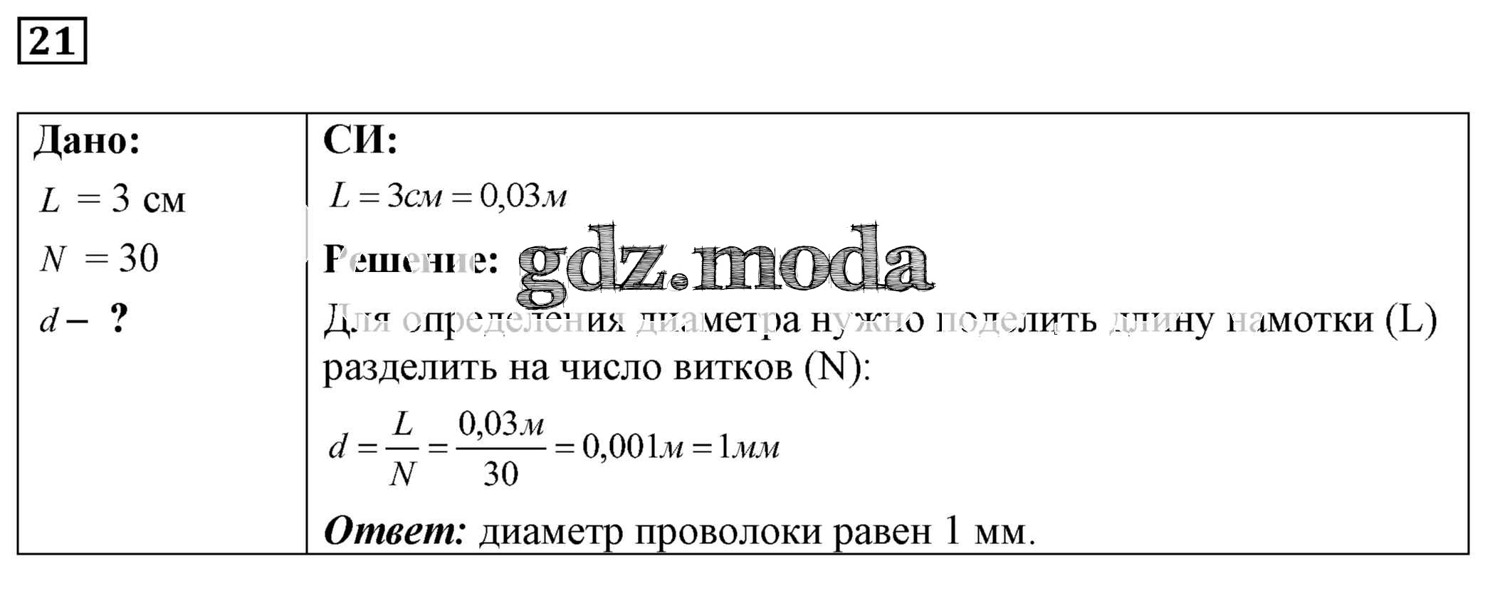 ГДЗ решение к заданию № 21 Физика 7-9 класс Сборник задач Лукашик В.И. Просвещение 2011 ФГОС бесплатно на гдз.мода!