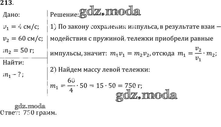 ОТВЕТ на задание № 213 Сборник задач по Физике 7-9 класс Лукашик