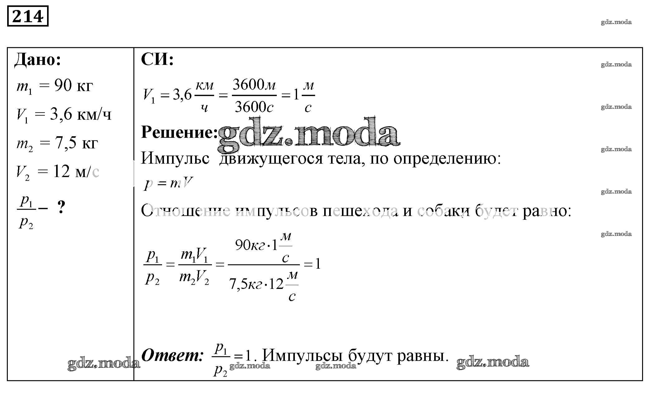 ОТВЕТ на задание № 214 Сборник задач по Физике 7-9 класс Лукашик