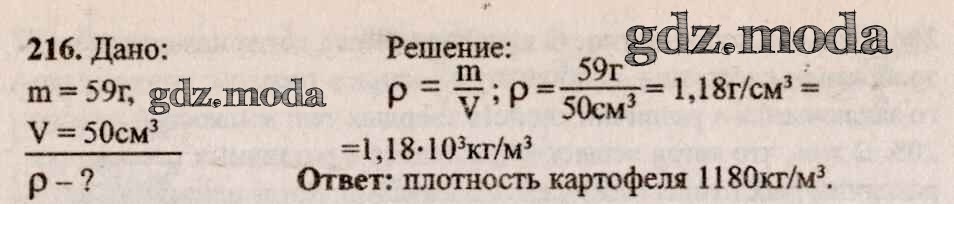 ОТВЕТ на задание № 216 Сборник задач по Физике 7-9 класс Лукашик