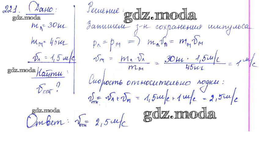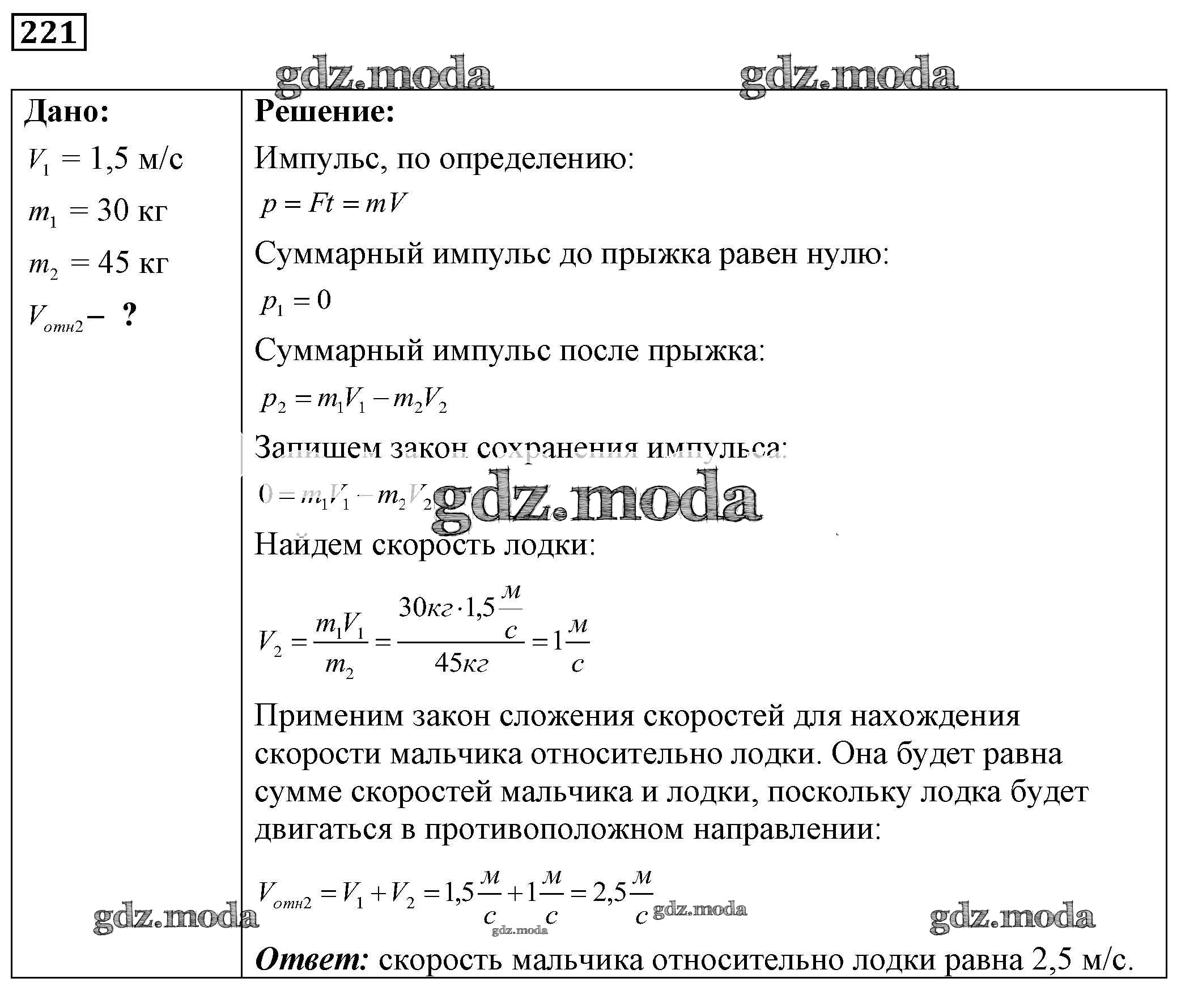 ОТВЕТ на задание № 221 Сборник задач по Физике 7-9 класс Лукашик