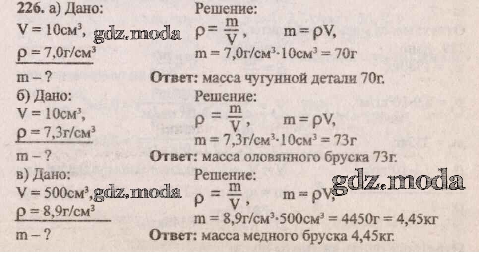 ОТВЕТ на задание № 226 Сборник задач по Физике 7-9 класс Лукашик