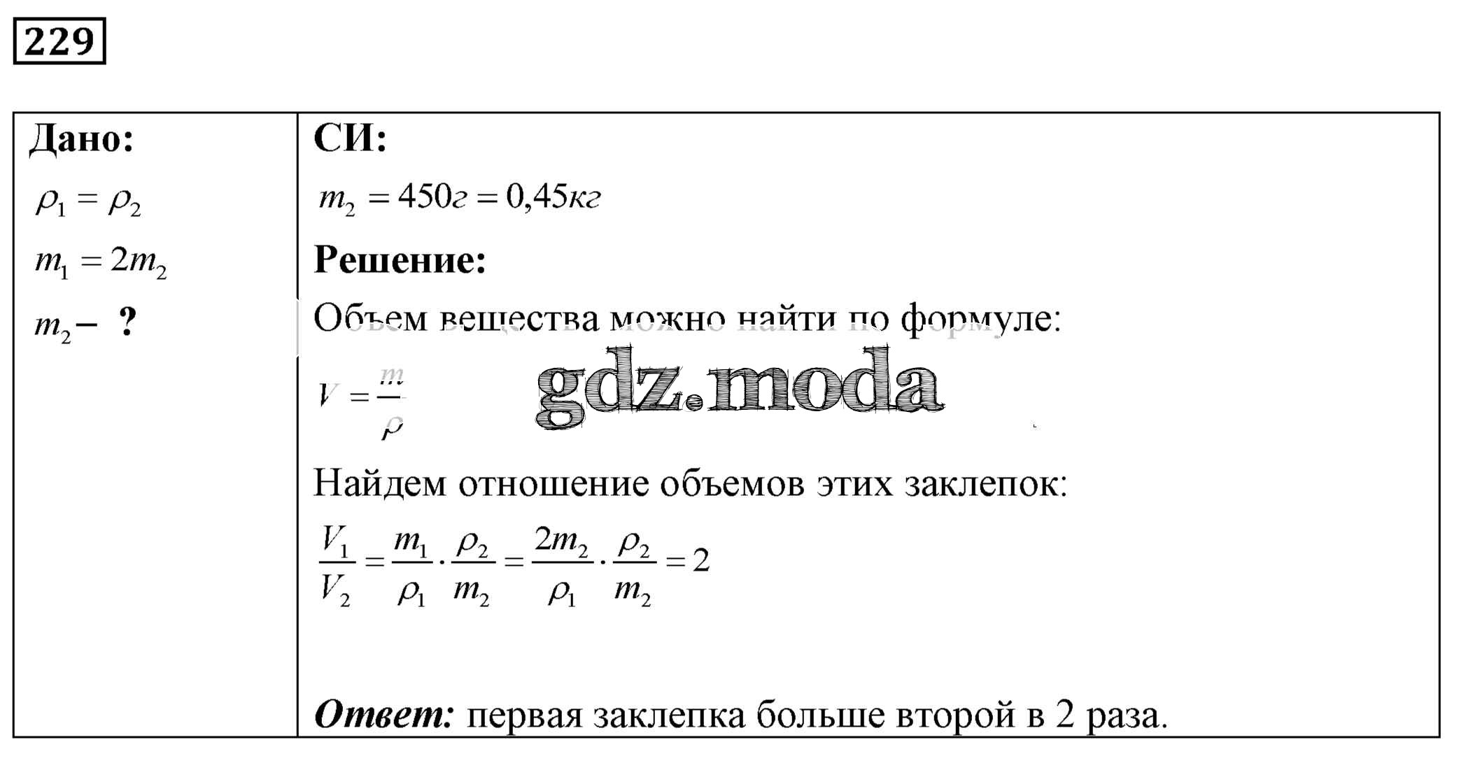 ОТВЕТ на задание № 229 Сборник задач по Физике 7-9 класс Лукашик