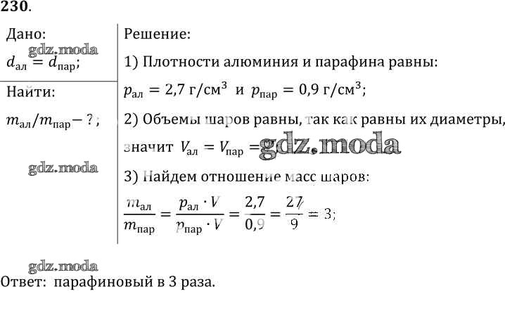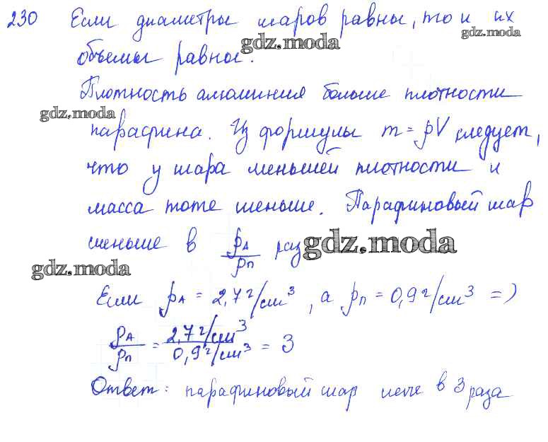 ОТВЕТ на задание № 230 Сборник задач по Физике 7-9 класс Лукашик
