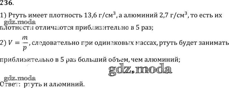 ОТВЕТ на задание № 236 Сборник задач по Физике 7-9 класс Лукашик