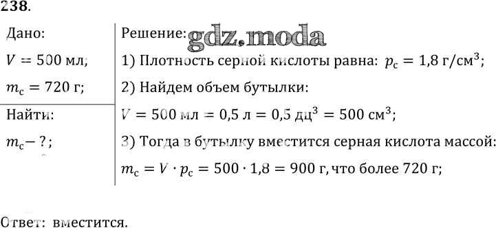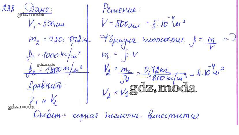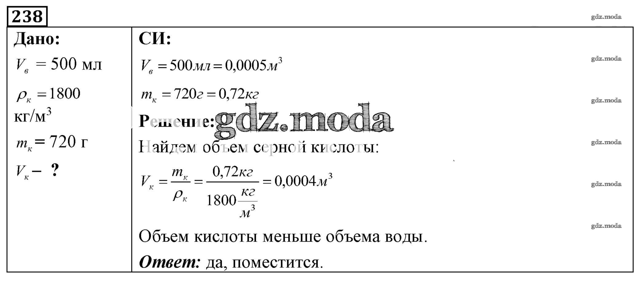 ОТВЕТ на задание № 238 Сборник задач по Физике 7-9 класс Лукашик