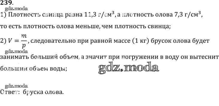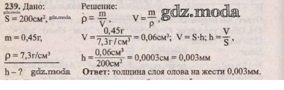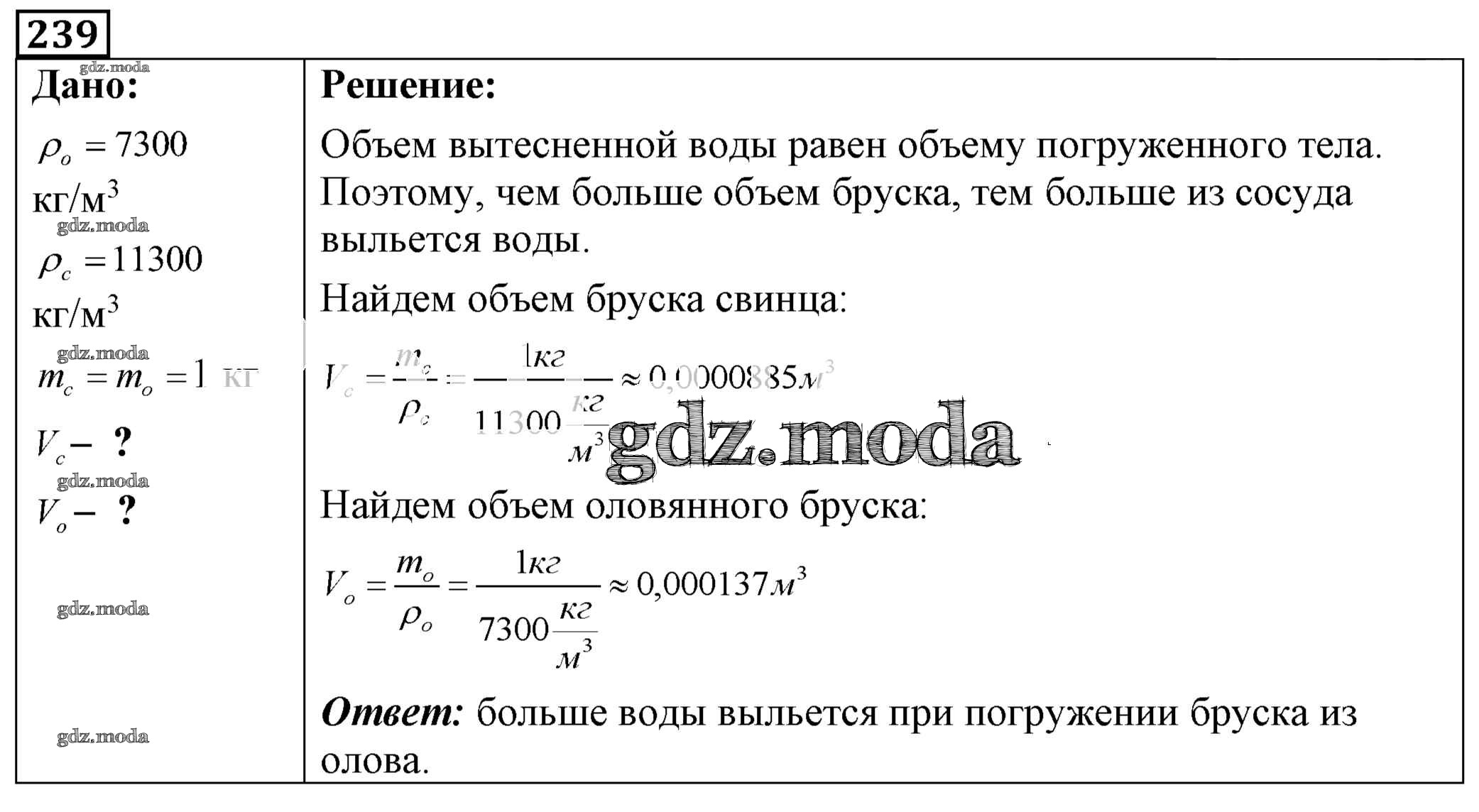 ОТВЕТ на задание № 239 Сборник задач по Физике 7-9 класс Лукашик