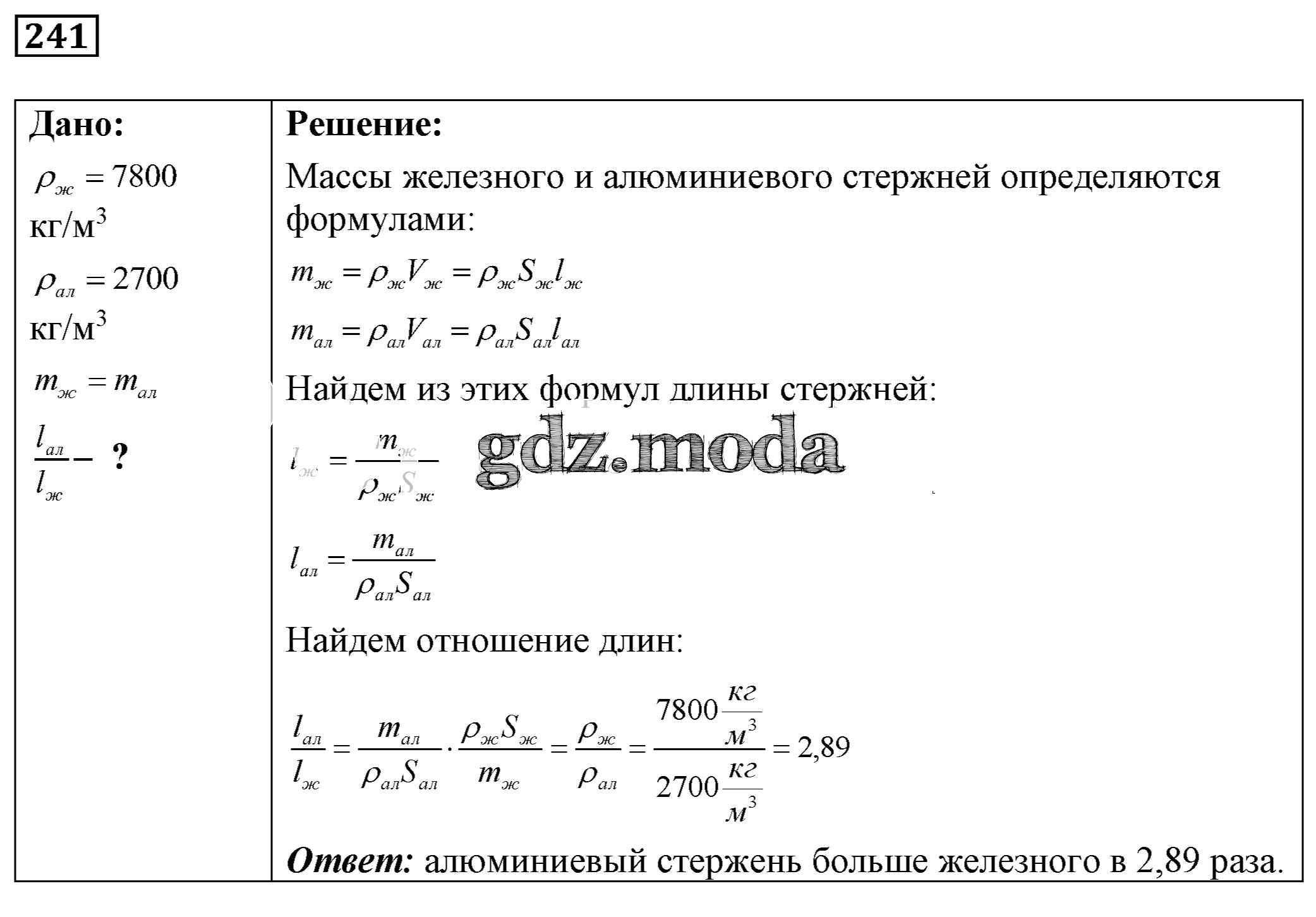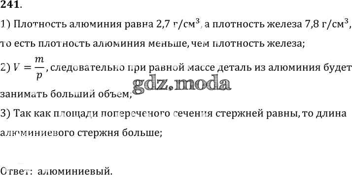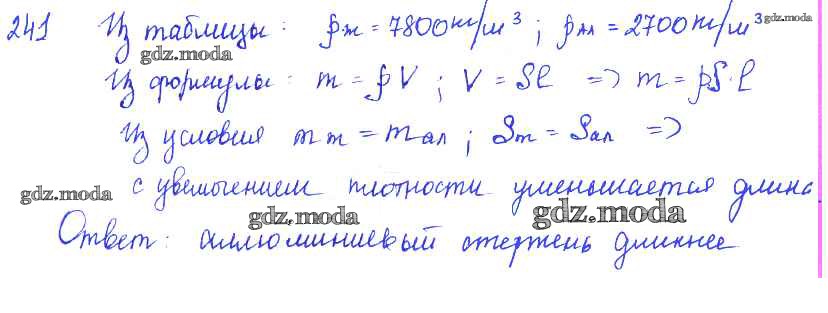 ОТВЕТ на задание № 241 Сборник задач по Физике 7-9 класс Лукашик