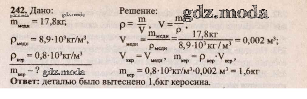 ОТВЕТ на задание № 242 Сборник задач по Физике 7-9 класс Лукашик