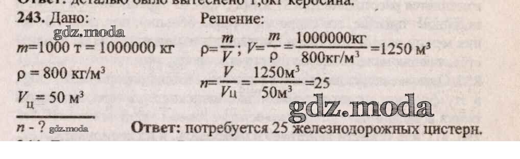 ОТВЕТ на задание № 243 Сборник задач по Физике 7-9 класс Лукашик