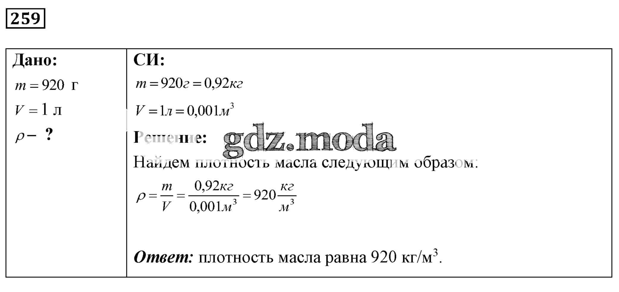 ОТВЕТ на задание № 259 Сборник задач по Физике 7-9 класс Лукашик
