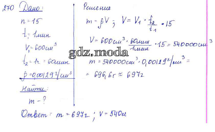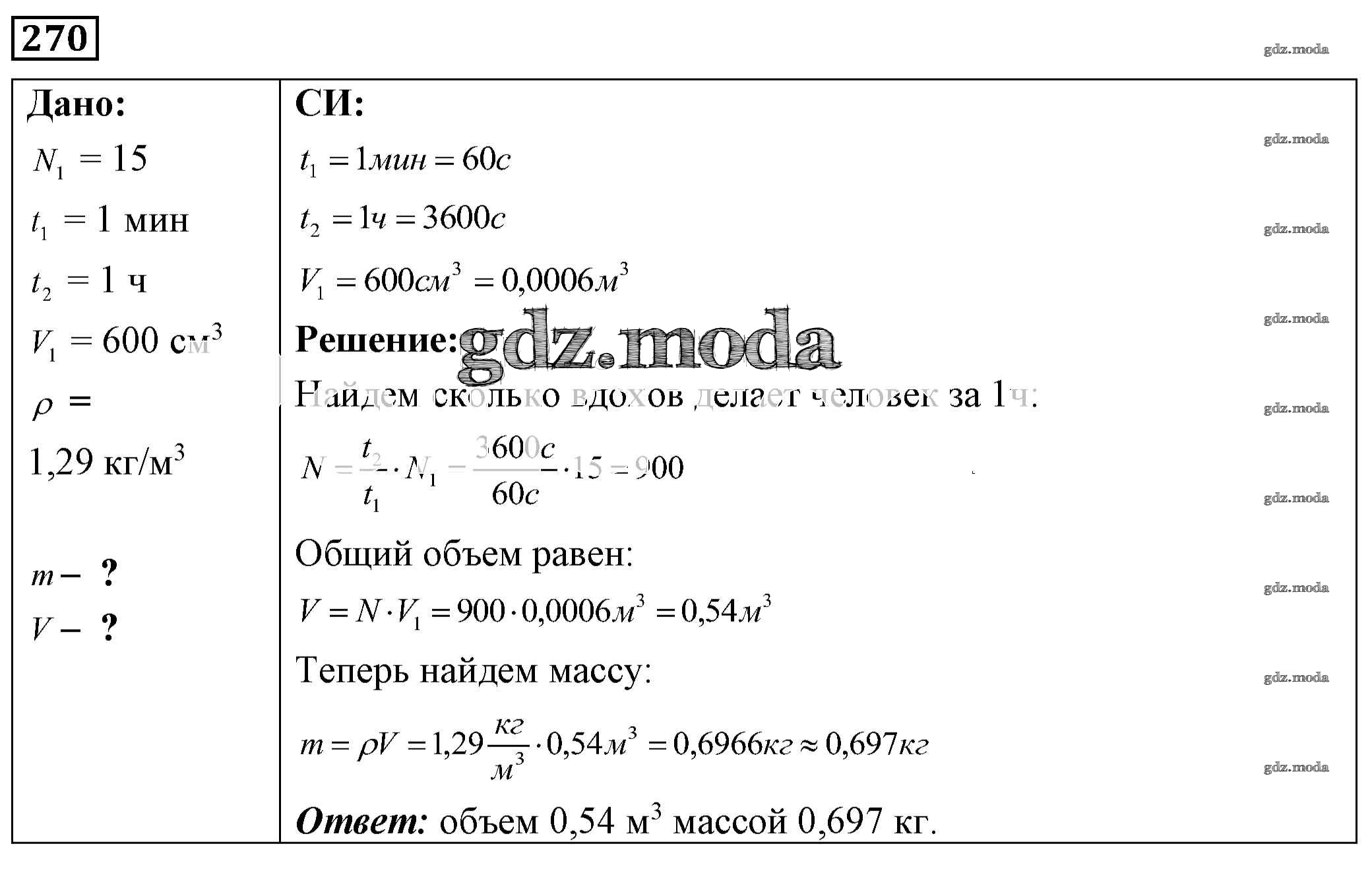 ОТВЕТ на задание № 270 Сборник задач по Физике 7-9 класс Лукашик
