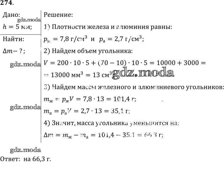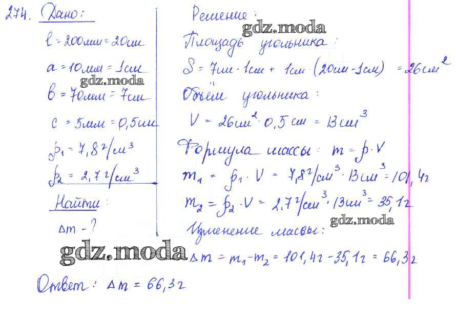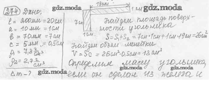 ОТВЕТ на задание № 274 Сборник задач по Физике 7-9 класс Лукашик